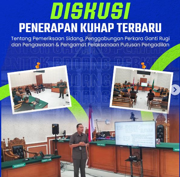 Pengadilan Negeri Tanjung Balai Karimun mengadakan Diskusi Penerapan KUHAP terbaru tentang Pemeriksaan Sidang, Penggabungan Perkara Ganti Rugi dan Pengawasan & Pengamat Pelaksanaan Putusan Pengadilan serta diskusi Penerapan KUHAP terbaru Tentang Mekanisme, Hak dan Prosedur Peradilan.