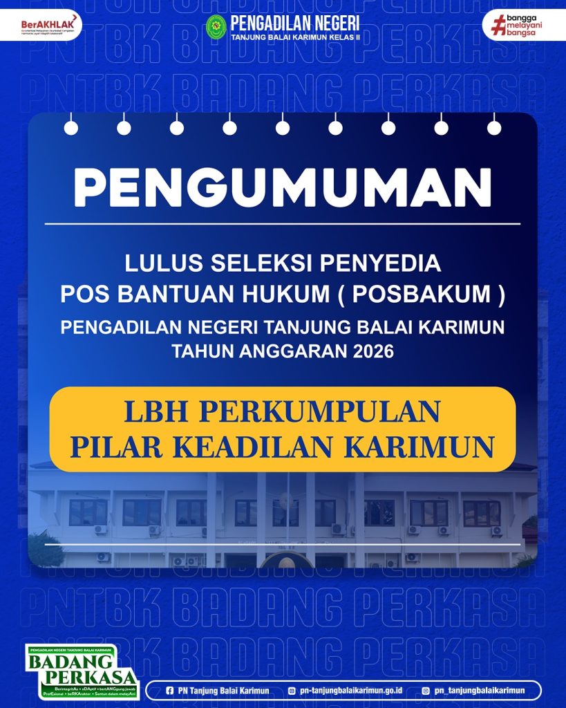 Kegiatan Pengumuman Pengumuman Lolos Seleksi POSBAKUM TA 2026 29 Desember 202514 Januari 2026 admin Share Facebook Twitter