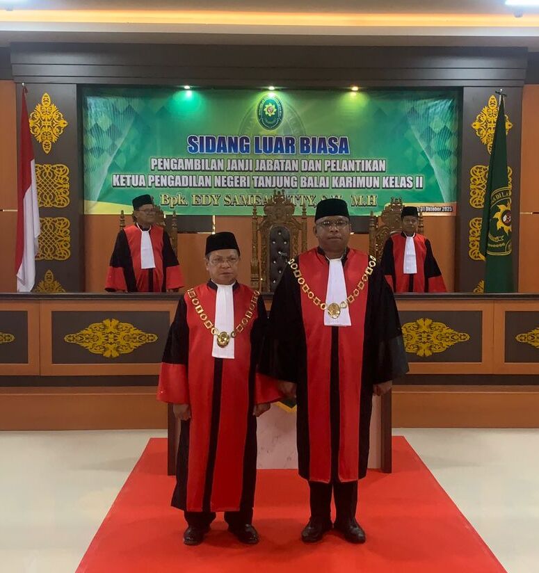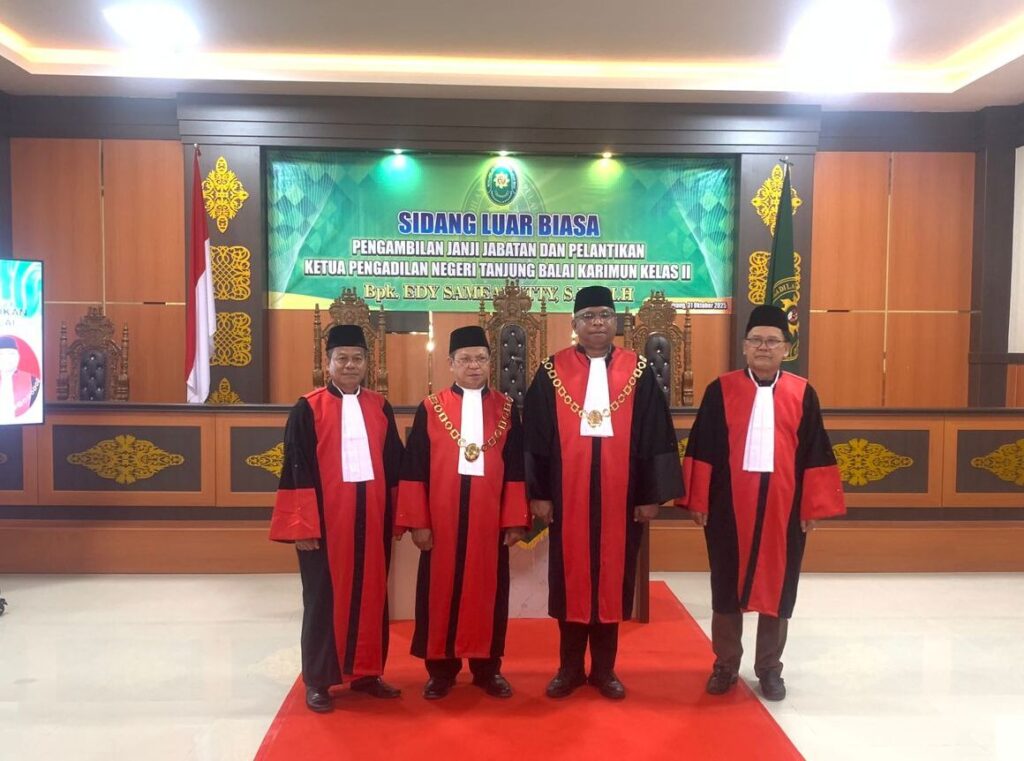 Bertempat di Pengadilan Tinggi Kepulauan Riau, dilangsungkan pengambilan janji jabatan dan pelantikan Ketua Pengadilan Negeri Tanjung Balai Karimun Bapak Edy Sameaputty, S.H., M.H oleh Ketua Pengadilan Tinggi Kepulauan Riau, Bapak H. Ahmad Salihin, S.H., M.H yang dihadiri oleh seluruh aparatur Pengadilan Tinggi Kepulauan Riau dan seluruh tamu undangan.